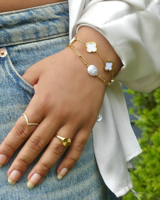 AusverkauftKlee Armband Weis & Gold
